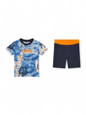 Guess Set Bambino Colore BLUE PALM PRINT, Modello: N5GG11 K8HM4 Tessuto Cotone Made in INDIA