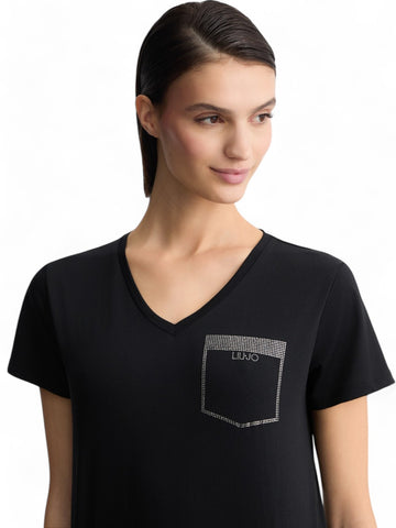Liu-Jo T-shirt Donna Colore Nero, Modello: TA5172 JS923 Tessuto Cotone Made in CN
