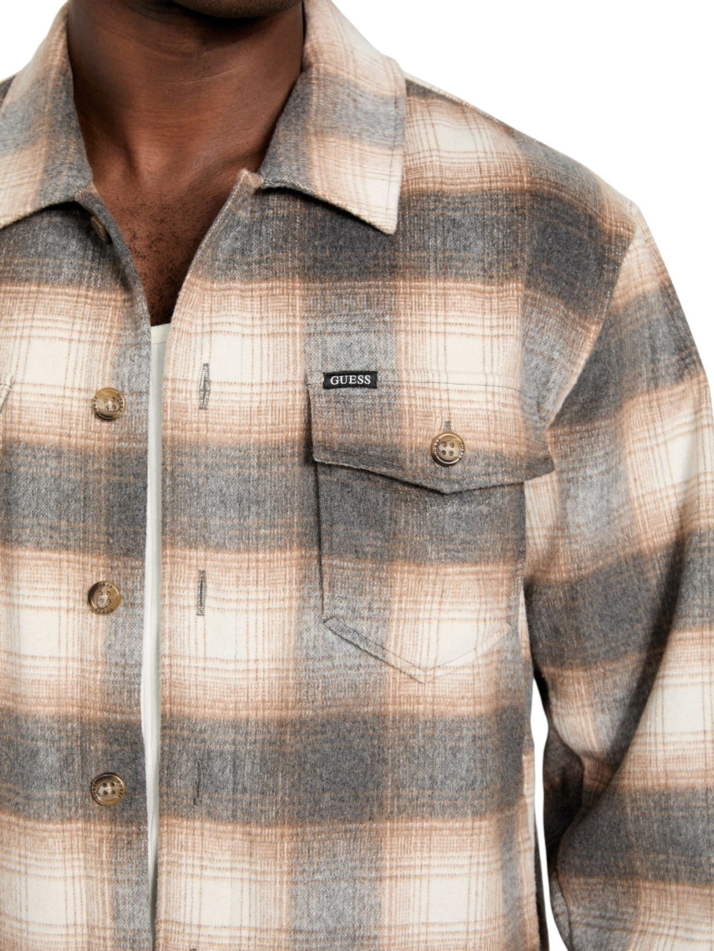 Guess Camicia Uomo Colore Beige, Modello: M5BH31 W2012 Tessuto Misto lana Made in CHINA