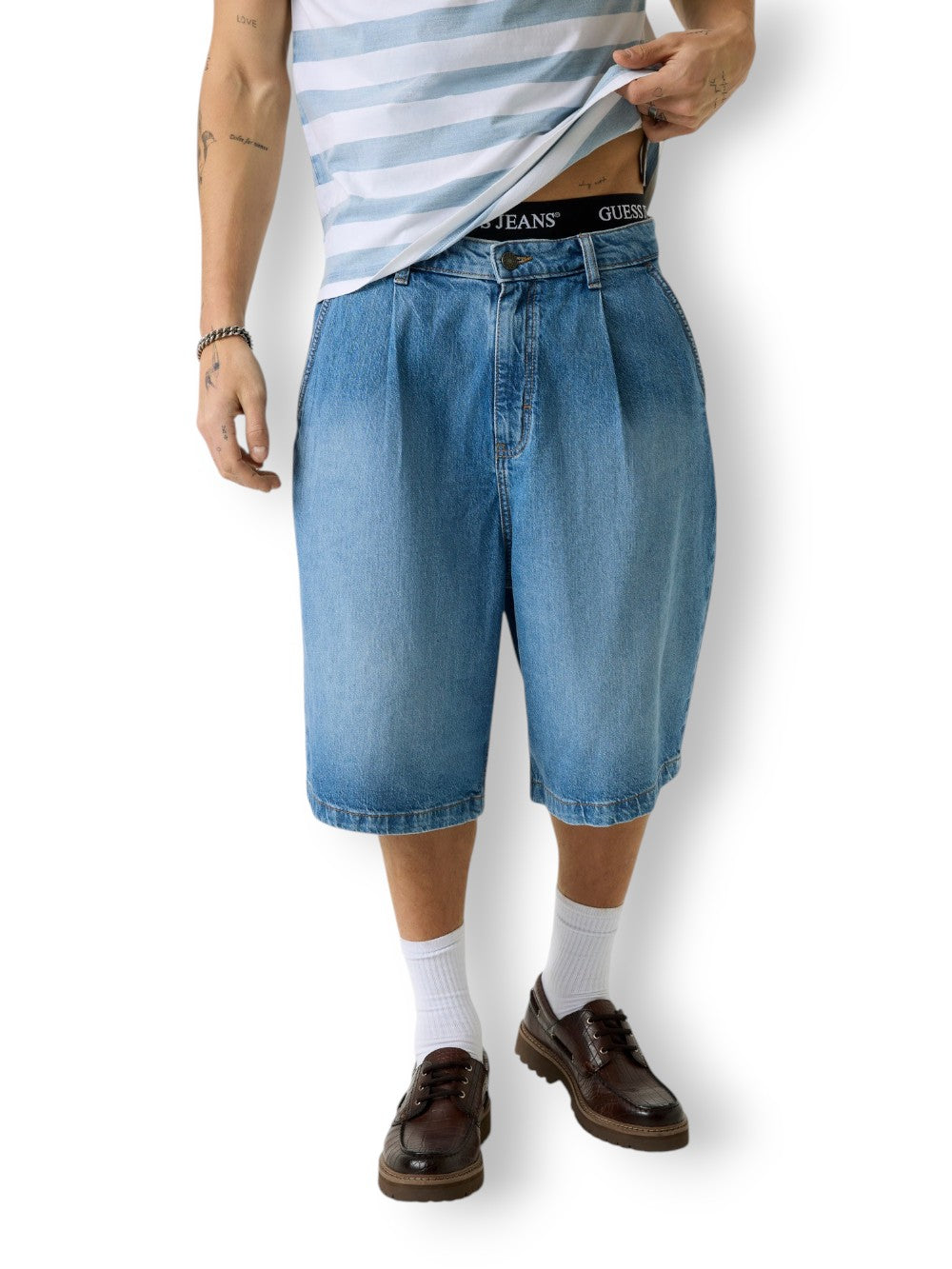 Guess Jeans Bermuda Uomo Colore Panna/blu - Multicolore, Modello: M6GD39 D7961 Tessuto CotoneDettagli:SKU: 649606Modello: M6GD39 D7961 GHCK GJ HICKORY STRIPEBrand: Guess JeansArticolo: BermudaSettore: UomoColore: Panna/blu - MulticoloreTessuto: Cotone